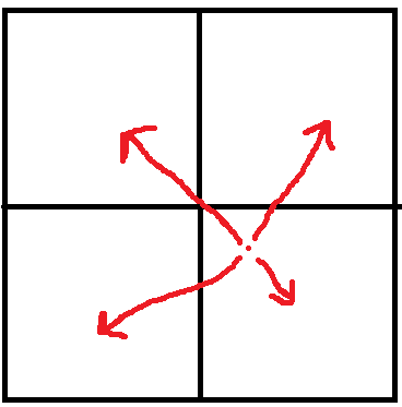 inside the square, which means eventually every point will be reached. this does not happen with any other shape.